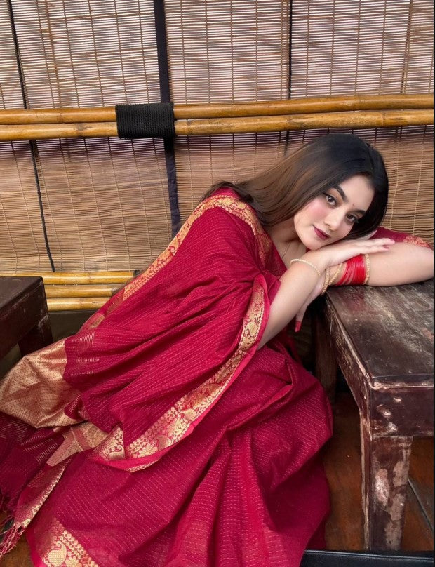 🔥 খুবই সুন্দর কটন চেক শাড়ি,এটাকে কাঁথা সেলাই শাড়িও বলে,